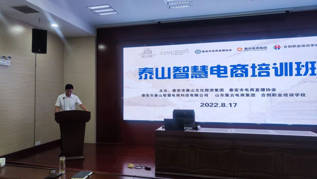 泰山文旅集團(tuán)黨委委員、籌備組成員王厚哲做了開班致辭,此次培訓(xùn)班特意邀請(qǐng)了合創(chuàng)職業(yè)培訓(xùn)學(xué)校的5位專業(yè)電商和直播講師,課程在直播、短視頻等方面都有涉及,希望大家認(rèn)真學(xué)習(xí),做好新媒體工作。近年來,在市委、市政府堅(jiān)強(qiáng)領(lǐng)導(dǎo)下,我市按照“產(chǎn)業(yè)為基、電商為市、人才為盾、品牌為魂”的發(fā)展思路,不斷夯實(shí)電商基礎(chǔ),提升服務(wù)能力,電商產(chǎn)業(yè)取得了較快發(fā)展,產(chǎn)業(yè)規(guī)模和效益取得了明顯成效。在此電商大環(huán)境下,泰安市泰山智慧文旅集團(tuán)與泰安市電商直播協(xié)會(huì)合作共創(chuàng),成立泰安市泰山智慧電商科技有限公司,將共同打造泰安高品質(zhì)直播電商平臺(tái),開展直播帶貨、產(chǎn)品供應(yīng)鏈、直播培訓(xùn)等相關(guān)業(yè)務(wù)。進(jìn)一步擴(kuò)大“泰山出品”品牌影響力,推動(dòng)我市電子商務(wù)高質(zhì)量發(fā)展。