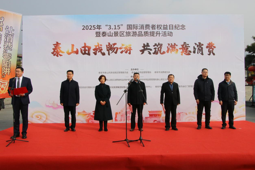 為迎接第43個“3·15”國際消費者權(quán)益日,3月11日,泰山景區(qū)“3·15”國際消費者權(quán)益日紀(jì)念暨泰山景區(qū)旅游品質(zhì)提升活動在紅門游客中心廣場舉行,此次活動旨在進一步營造安全放心、公平誠信的消費環(huán)境,助力景區(qū)高質(zhì)量發(fā)展。